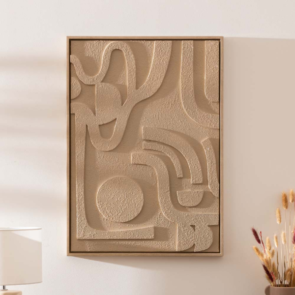 De Marguerite canvas van Eazy Living is een echte eyecatcher voor in jouw interieur. Het canvas is gemaakt van stof met 3D-structuur, gespannen over een MDF frame. De canvas poster heeft een print met geometrische lijnen en vormen. Dankzij de unieke look en de zachte beige kleur kan je de Marguerite in verschillende ruimtes in huis gebruiken. Fleur de hal op of geef je woonkamer een unieke toets, aan jou de keuze! Het Eazy Living canvas heeft een afmeting van 50 cm op 70 cm.