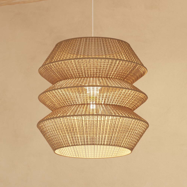 Ga voor een sfeervolle toets in jouw interieur met de Cera hanglamp van Eazy Living. Deze jute hanglamp heeft een mix van luchtigheid en gezelligheid dankzij het mooie materiaal en de unieke vorm. De hangende lamp heeft een ijzeren frame en is versierd met jute. Dankzij de jute heeft de Cera lamp een natuurlijke tint en verspreidt de lamp een mooi, zacht licht. De Eazy Living hanglamp staat mooi in verschillende interieurs en ruimtes, en kan je makkelijk combineren. De hanglamp heeft een diameter van 38 cm en wordt exclusief lichtbron geleverd.