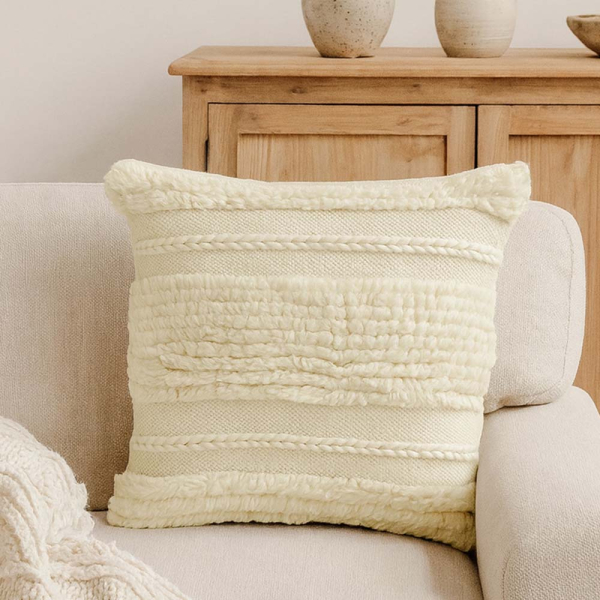 Dit witte sierkussen voegt diepte en textuur toe aan elke kamer. Combineer het met andere kussens of een plaid voor een knusse, uitnodigende zithoek. De Kretinga voelt heerlijk zacht aan, ziet er luxe uit en creëert direct een warme sfeer in huis.