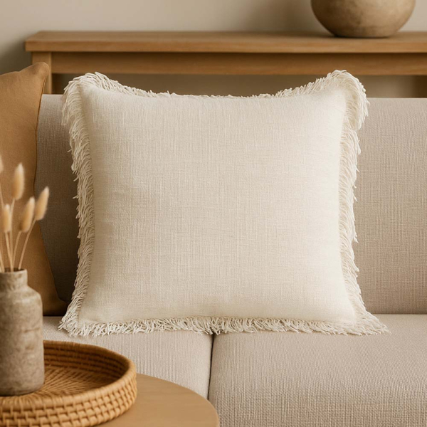 Voeg moeiteloos gezelligheid toe aan je interieur met het charmante Palanga sierkussen. Het witte kussen heeft een tijdloos ontwerp, gemaakt van zacht katoen met een comfortabele polyester vulling. De subtiele franjes rondom zorgen voor een speels, maar elegant accent dat in elk interieur past.