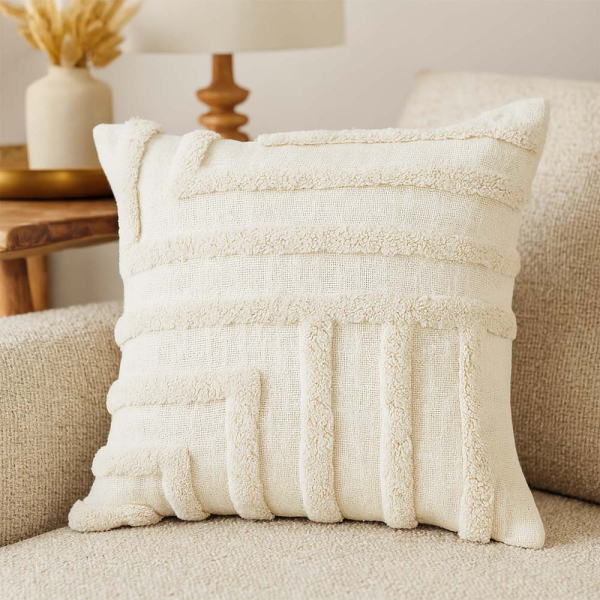 - Afmetingen: Handig en evenwichtig formaat van 45 x 45 cm dat perfect past op sofa’s, stoelen of het bed.