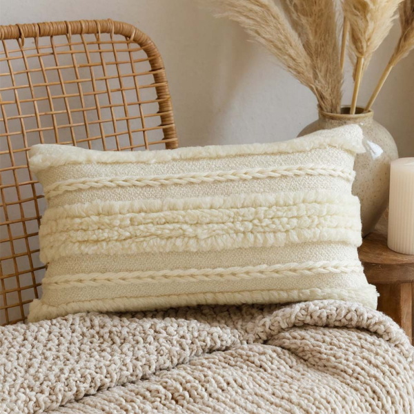 - Stijlvolle geweven textuur: Het patroon met reliëf en gevlochten details geeft het witte sierkussen een luxueuze uitstraling.