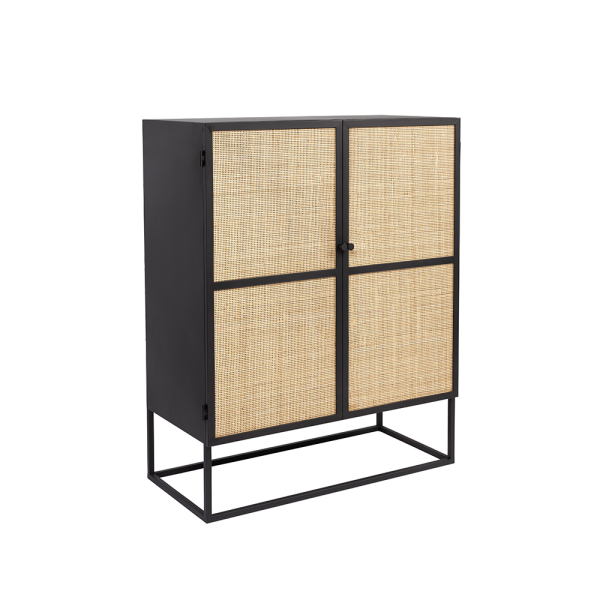 Deze zwarte Floor van Nesthaus is een praktische dressoir met 2 rotan deuren. Binnenin de kast vind je 2 legplanken en 4 opbergvakken. Het onderstel is gepoedercoat ijzer waardoor de wandkast in veel interieurs past. De Floor kast is perfect om boeken, speelgoed of decoratieve woonaccessoires zoals plaids in op te bergen. Combineer deze kast met een andere kast uit dezelfde collectie en maak je interieur helemaal af.