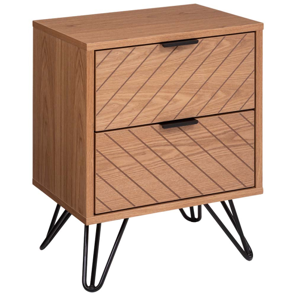 Het houten nachtkastje uit de Berne collectie van Eazy Living is een mooie toevoeging aan jouw slaapkamer. Het houten ladekastje is voorzien van 2 lades met voldoende ruimte voor boeken of andere spullen. Boven op het kastje kan je een nachtlamp of wekkerradio zetten. Je kan het ook als bijzettafel gebruiken in de woonkamer of in de hal. Het is gemaakt van massief dennenhout en MDF met een beige houtkleur. Het gestreept patroon op de lades en het zwart onderstel zorgen voor een tijdloze uitstraling en daarom past het Berne kastje in veel interieurstijlen. De afmetingen van dit nachtkastje zijn 40 x 54 cm.