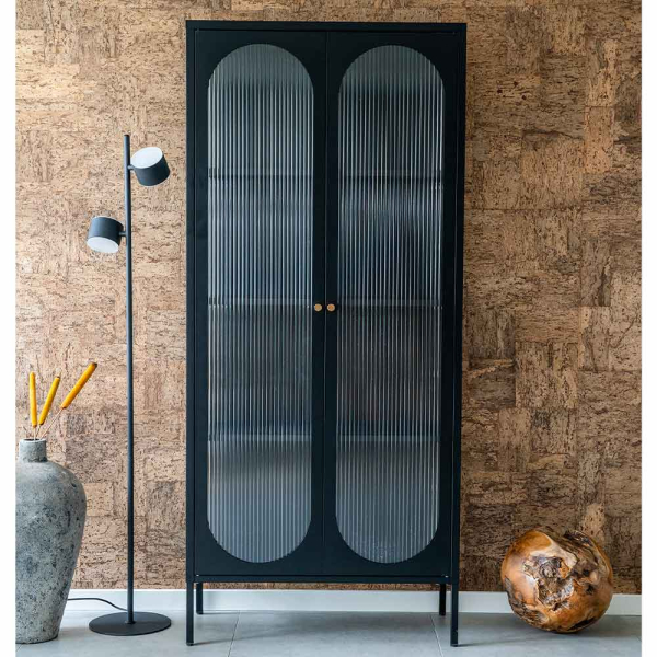 House Collection Vitrinekast Gunner Zwart 80 x 35 x 180 cm