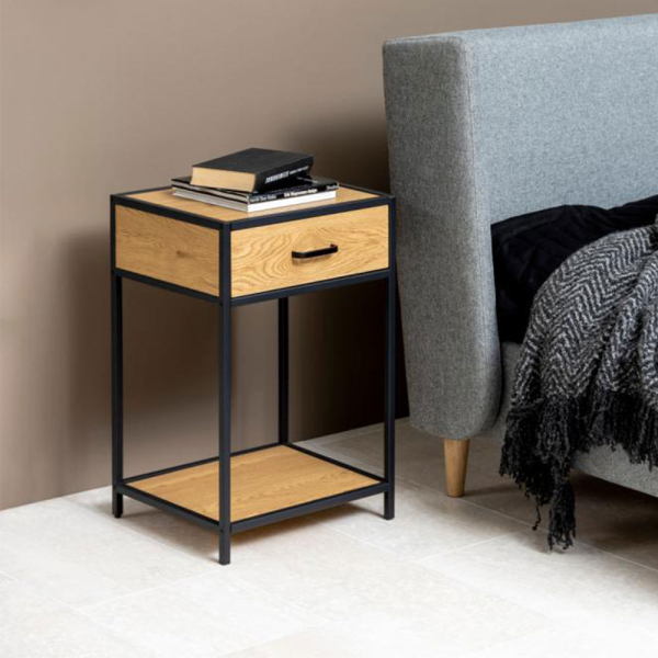 Smuk Nachtkastje Chelsea Eik - Zwart