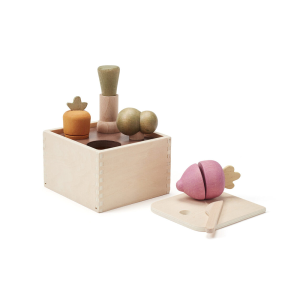 Wil je ook je eigen groentjes planten? Met dit houten speelsetje van Kid’s Concept kunnen kleine tuinmannen en -vrouwen hun mini-tuintje onderhouden. Het houten plantbakje bevat een biet, wortel, broccoli en een prei die wanneer ze geoogst zijn gesneden kunnen worden op het snijplankje. Zo kan je bijvoorbeeld een lekkere soep maken! Alle onderdelen kunnen netjes opgeborgen worden in het houten bakje met deksel. Geschikt voor kinderen vanaf 24 maanden.