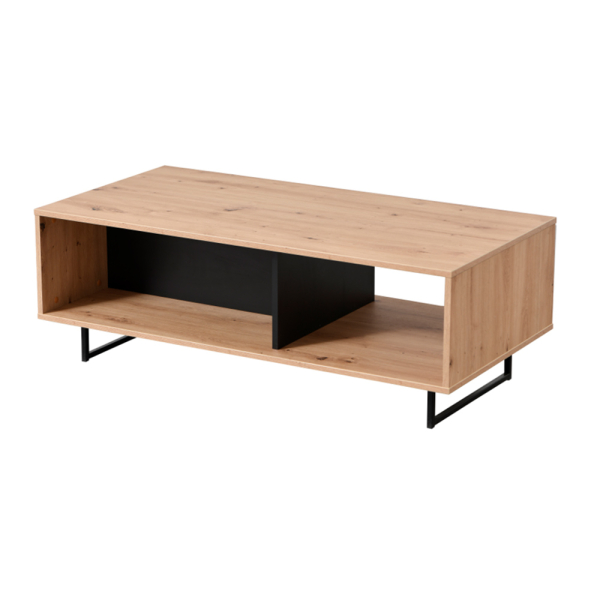 De Karim salontafel van FurniStyle zorgt voor een houten accentje in jouw interieur. De rechthoekige salontafel is gemaakt van spaanplaat en heeft een kleurcombinatie van hout en zwart. Zo heeft de salontafel zwarte poten en een opbergvak in het zwart. Dankzij de opbergruimte onderaan het tafelblad heb je plaats voor plaids, onderleggers, magazines, boeken en afstandsbedieningen. Bovenop de tafel kan je leuke decoratie zoals een plantje of kaarsjes plaatsen. De Karim salontafel staat leuk in een modern of industrieel interieur, maar kan ook geplaatst worden in andere interieurstijlen.