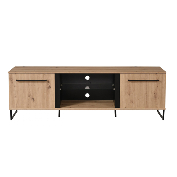 Het Karim TV-meubel van FurniStyle zorgt voor een houten accentje in jouw interieur. Het rechthoekige TV-meubel is gemaakt van spaanplaat en heeft een kleurcombinatie van hout en zwart. Zo heeft de TV-meubel zwarte poten en een opbergvak in het zwart. De TV-kast heeft 2 deuren en 1 opbergvak, zo heb je voldoende opbergruimte voor media-apparaten en andere items die je uit het zicht wil bewaren. Bovenop de kast kan je naast een TV leuke decoratie zoals een plantje of kaarsjes plaatsen. De Karim TV-meubel staat leuk in een modern of industrieel interieur, maar kan ook geplaatst worden in andere interieurstijlen.