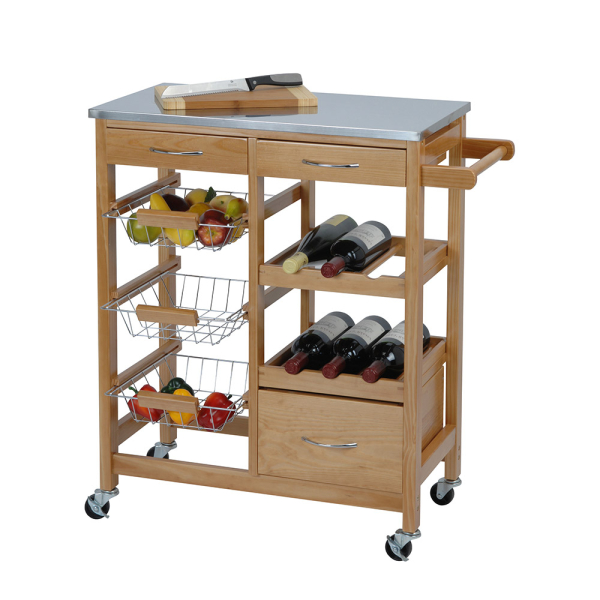 Heb jij weinig plaats in je keuken? Dan is Levi van MyHome de beste oplossing voor extra opbergruimte! Het eenvoudige design en de combinatie van het grenenhout met het roestvrijstalen blad geeft het geheel een zeer cleane en eenvoudige look. De trolley is voorzien van 4 wieltjes die voorzien zijn van remmen. De keukentrolley is 84 cm hoog en 66 cm lang.
