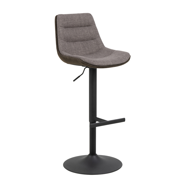 Ga voor een stijlvolle toets in de keuken of eetkamer met de Elijah barkruk van Smuk. De grijsbruine barkruk heeft een stoffen bekleding en staat op een zwartgelakte metalen trompetvoet. De stoffen bekleding heeft een tweekleurig effect, en de trompetvoet is in de hoogte verstelbaar en draaibaar. Bovendien heeft de trompetvoet ook een voetensteun voor extra comfort. De stoffen barkruk heeft een breedte van 47 cm, een diepte van 52,5 cm en een hoogte van 95 cm.