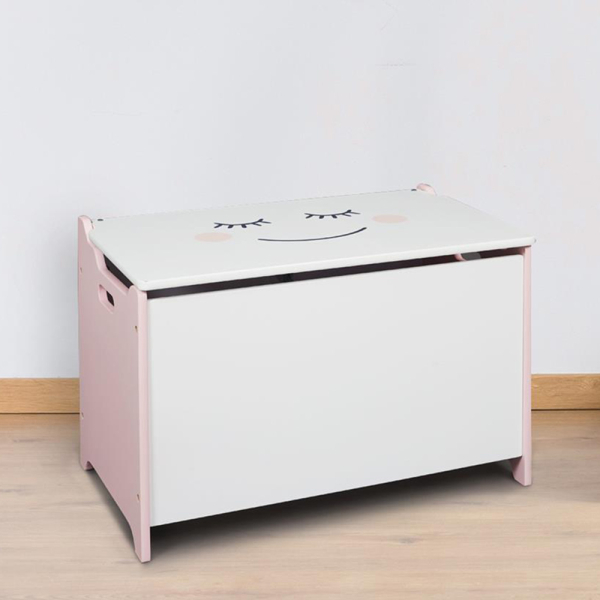 Een speelgoedopberger kan niet ontbreken in de kinderkamer of speelkamer. De Jennifer speelgoedkist van Uniquely is zeker een aanrader. Deze ruime speelgoedkist is gemaakt van witgelakt MDF en is uitgerust met een deksel. De speelgoedopberger is volledig wit, maar heeft op het deksel wel een lachend gezichtje. Je kan de Jennifer gebruiken om speelgoed, boeken en knuffels op te bergen. De Uniquely speelgoedkist heeft een breedte van 60 cm, een diepte van 38 cm en een hoogte van 36,5 cm.