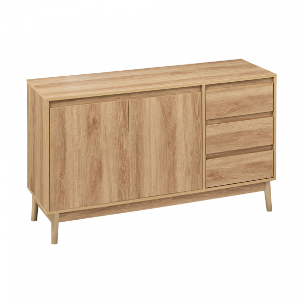 De Foix dressoir van Eazy Living is een simpel maar stijlvolle dressoir! De dressoir is gemaakt van spaanplaat en is voorzien van 2 deuren en 3 lades met soft-close. Je kan de dressoirkast Foix in verschillende ruimtes in huis gebruiken dankzij het handige formaat, en de 2 deuren en 3 lades. De houten dressoir van Eazy Living heeft een breedte van 120 cm, een diepte van 39 cm en een hoogte van 76 cm.