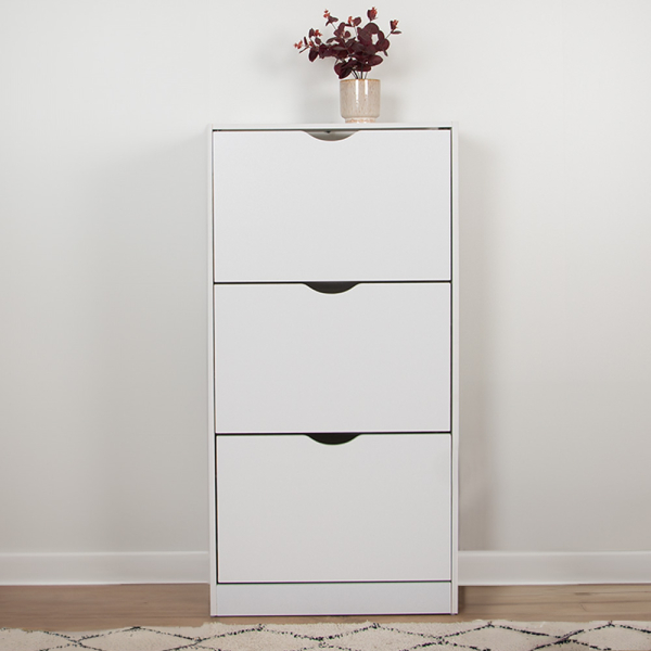 - Compact ontwerp: De schoenenkast heeft een smal, compact ontwerp met voldoende opbergruimte. Perfect voor in de hal of dressing.