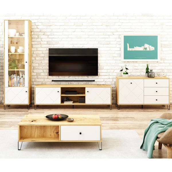 Wil je graag je woonkamer een nieuwe look geven? Dan is de Valentina woonkamerset van Casa Olive zeker een aanrader. Met de Valentina meubelset koop je 4 woonkamermeubels die bij elkaar passen. Zo moet je niet de hele webshop doorzoeken naar een dressoir, salontafel, vitrinekast en TV-meubel die bij elkaar passen. De woonkamer set is een 4-delige set gemaakt van spaanplaat. De Valentina set heeft een kleurcombinatie van wit en hout, en de deuren zijn versierd met een ruitenprint. De wit-hout kleurcombinatie zorgt ervoor dat je de Casa Olive woonkamerset makkelijk kan combineren met andere meubels en decoratie.
