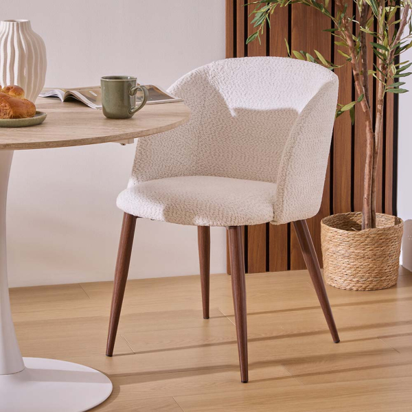 Eazy Living Bouclé Eetkamerstoel Sandrine Wit