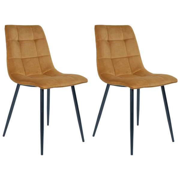 De Gara eetkamerstoel van House Collection combineert eenvoud met moderniteit en voegt er dankzij de prachtige velvet zitting extra gezelligheid aan toe. Deze mosterdgele stoel concentreert zich op het essentiële: een comfortabele zitting, een stevig onderstel en een modern design. De gewatteerde stoel is bekleed met mosterdgeel velours, een kleur die je eetkamer meteen meer smaak geeft! De Gara eetkamerstoel heeft een zithoogte van 50 cm en een zitdiepte van 38 cm. Deze stoelen set bevat 2 eetkamerstoelen.