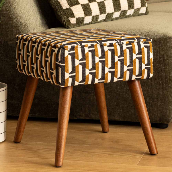 Met het Eazy Living krukje Ames fleur je elke ruimte op. Het gele krukje is namelijk versierd met een leuke print met verschillende kleuren. Het krukje is bekleed met polyester en staat op schuine pootjes van rubberhout. De kruk is zowel functioneel als decoratief. Je kan het Eazy Living krukje gebruiken als zitje, bijzettafel of voetensteun, of je kant het krukje gebruiken als decoratie om een lege hoek op te vullen. De gele kruk Ames heeft een breedte van 38 cm, een diepte van 38 cm en een hoogte van 42 cm.