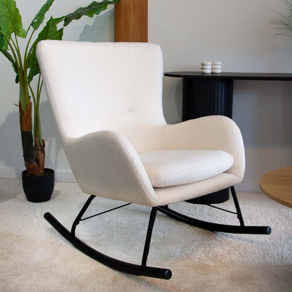 - Tijdloos design: Het verfijnde Scandinavische ontwerp van de Ferrara schommelstoel en de elegante zwarte metalen poten maken de stoel tot een statement piece in jouw interieur.