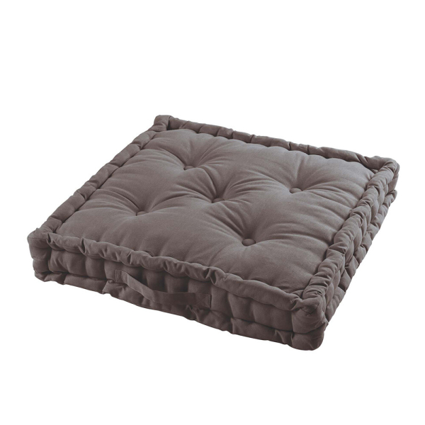 Met dit leuke grijze grondkussen voeg je iets extra toe aan je interieur! De Bali vloerkussens kan je op verschillende manieren gebruiken. Je kan het als vloerkussen gebruiken maar ook als stoelkussen en palletkussen. Dit leuke kussen is gemaakt van katoen. De Bali vloerkussens zijn ook in andere kleuren verkrijgbaar en ook in een kleiner formaat (45 x 45 x 10 cm). Je kan dit kussen perfect combineren met andere kussens of met de andere kleuren in de Bali collectie.