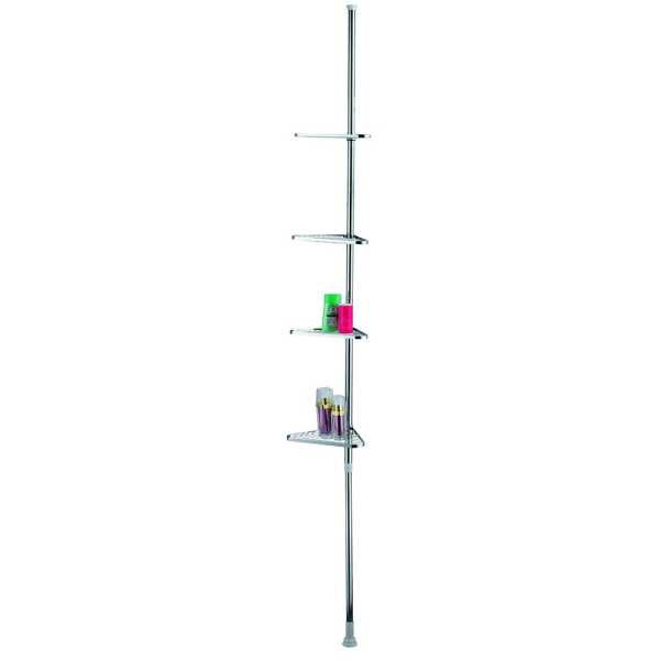 Het telescopisch doucherek van Milton & Oldbrook kan universeel opgesteld worden in de hoek van de douche, badkuip of badkamer. Het hoekrek heeft 4 niveaus en is verstelbaar in de hoogte (194 cm tot 252 cm). Een slimme en handige oplossing voor het opbergen van badkamergerei zonder boringen in de muur. Het staal met een laagje chroom zorgt voor een eenvoudige en moderne uitstraling.