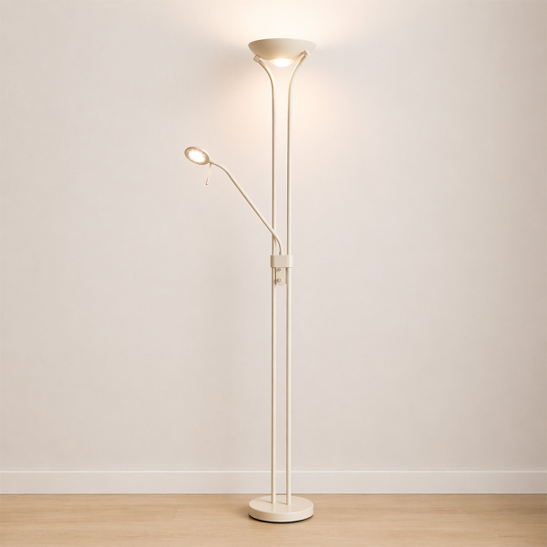 - 2-in-1 verlichting: De Bresca combineert een uplighter (indirect licht naar boven) met een flexibele leeslamp voor gericht licht.