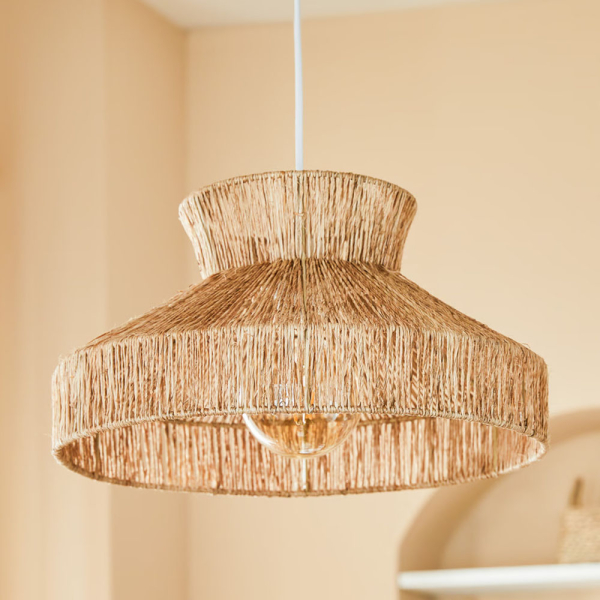 - Afmetingen: Met een diameter van 38 cm en een totale hoogte van 103 cm is de jute hanglamp groot genoeg om een ruimte prachtig te verlichten.