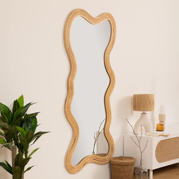 - Materiaal: De wandspiegel heeft een rotan-frame met en een glasoppervlak, wat zorgt voor duurzaamheid en een luxe uitstraling.