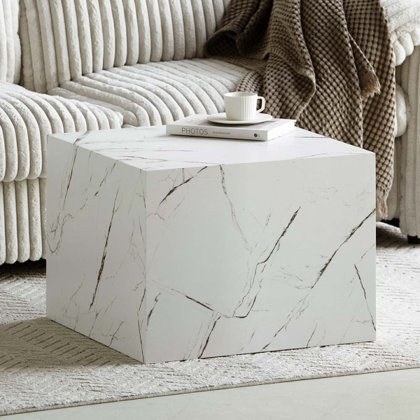 - Witte salontafel met marmerprint