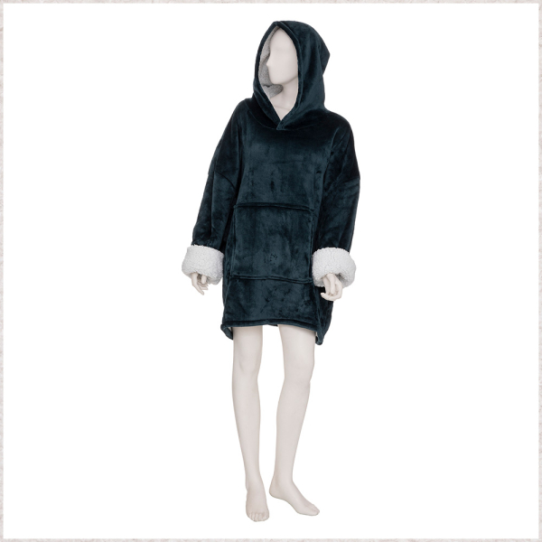De extra lange Maryan hoodie van Eazy Living biedt je de nodige warmte in huis tijdens de koude wintermaanden. De blauwe trui is gemaakt van 100% polyester en heeft mouwen, een capuchon en een ruime kangoeroezak. De Maryan trui komt tot aan de dijen en is dus perfect om lekker warm op de bank te gaan liggen, om thuis in rond te wandelen of om als pyjama te dragen. De maat van de trui zit tussen large en extra large en is wasbaar in de machine.
