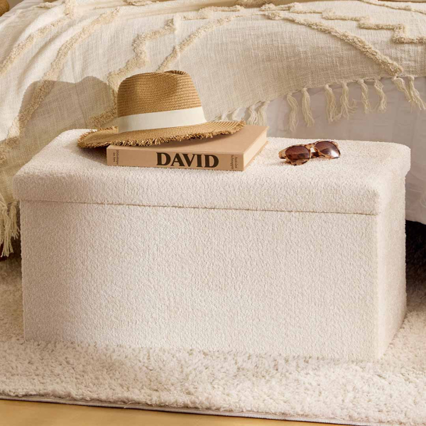 - Opvouwbaar ontwerp: De rechthoekige constructie maakt het eenvoudig om de witte poef compact op te bergen wanneer je hem niet gebruikt.