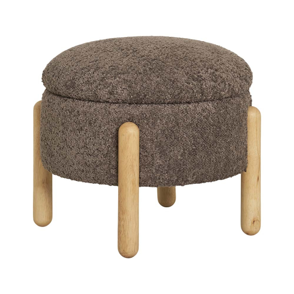 House Collection Bouclé Poef + Opbergbox Stellan Bruin
