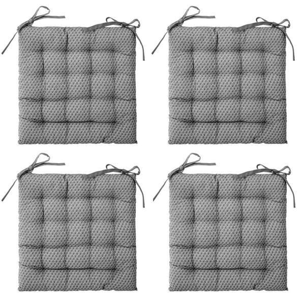 - 4 grijze stoelkussens