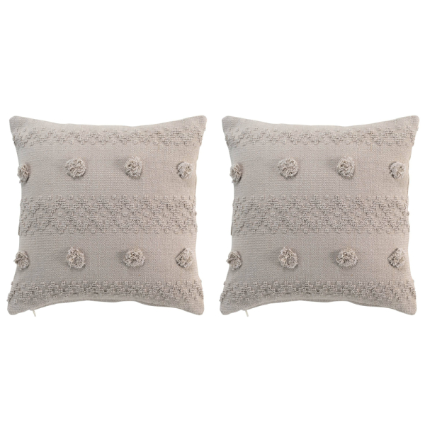 Een leuk accentkussen bezorgt jouw interieur een mini-make-over. Deze lichtgrijze boho-kussens met pompons hebben een trendy design van stevige katoengaren en een verborgen ritssluiting. De Martel kussenhoes 40x40 cm is verwijderbaar en kan gewassen worden op 30 °C. Versier je woonkamer, slaapkamer of eender welke kamer op een eenvoudige en modieuze manier met deze Martel kussenset bestaande uit 2 lichtgrijze kussens.