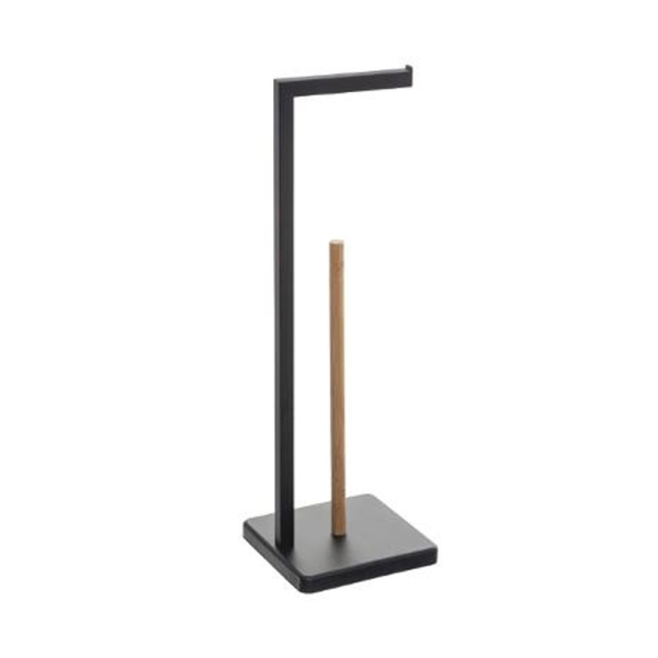 Zelfs de kleinste details maken de sfeer in je badkamer of toilet. De minimalistische zwarte Enzo toiletrolhouder van Eazy Living is een modern badkameraccessoire met een strakke look en een echte eyecatcher. Het is gemaakt van zwart gecoat metaal en heeft een stabiele vierkante voet van 20 op 20 cm. Op de bamboe staander kan je reserve rollen toiletpapier bewaren.