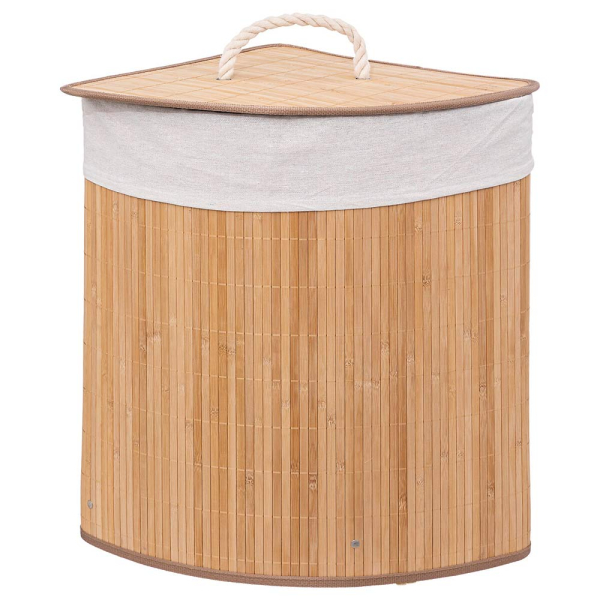 Op zoek naar een handige wasmand? Dan is de Croix wasmand van Eazy Living misschien wel iets voor jou. Deze mooie wasmand is zo gevormd dat je hem makkelijk in de hoek van een ruimte kan plaatsen. De wasmand heeft namelijk een driehoek vorm. De Croix wasmand is gemaakt van bamboe en heeft een stoffen waszak. De wasmand is een handige opberger en zorgt voor een warmte toets in de badkamer of waskamer dankzij het mooie bamboehout. De Croix wasmand heeft een breedte van 35 cm, een diepte van 35 cm en een hoogte van 50 cm.