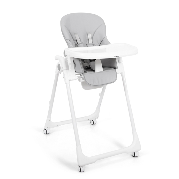 Mit dem grauen Alto-Hochstuhl von Baninni kann Ihr Kind mit Ihnen am Tisch sitzen. Dieser graue Hochstuhl ist ein mitwachsender Stuhl, d.h. er ist höhenverstellbar, hat eine verstellbare Rückenlehne, ein verstellbares Esstablett und eine verstellbare Fußstütze. Außerdem ist das Esstablett abnehmbar, ideal, wenn Sie Ihr Kind einfach in den Hochstuhl setzen oder den Hochstuhl reinigen möchten. Der Hochstuhl ist außerdem mit Rädern ausgestattet und lässt sich nach Gebrauch kompakt und freistehend zusammenklappen. Dank des 5-Punkt-Gurtes ist Ihr Kind im Hochstuhl immer sicher aufgehoben. Der Hochstuhl ist für Kinder von 6 Monaten bis 36 Monaten geeignet, mit einem maximalen Gewicht von 15 kg.