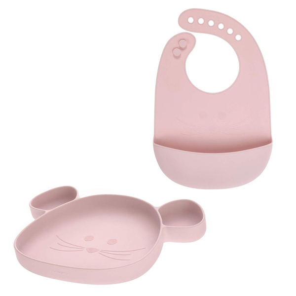 Lässig Silikonteller mit Saugnapf mit Silikonlätzchen Rosa