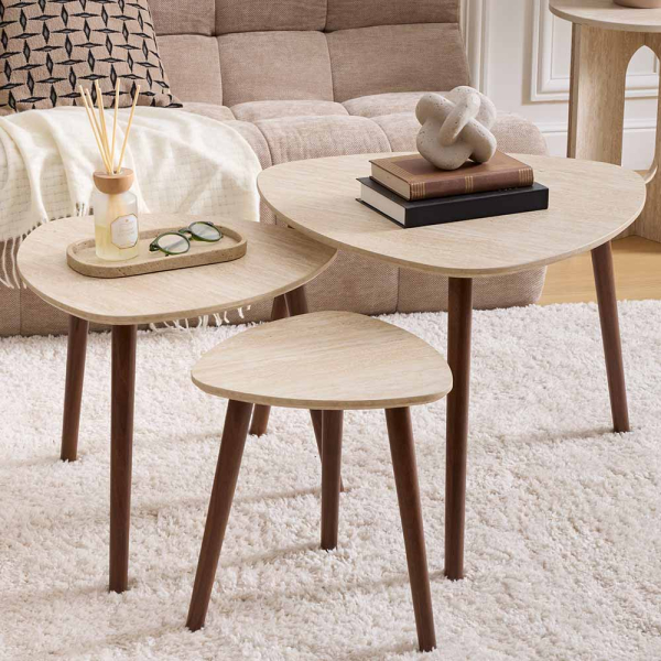- Set aus drei Tischen: Cleveres Nesting-Design, sodass die Tische gemeinsam oder separat genutzt und einfach ineinandergeschoben werden können.
