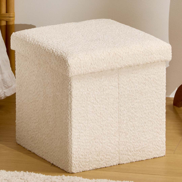 Eazy Living Bouclé Pouf + Aufbewahrungsbox Eden Weiß