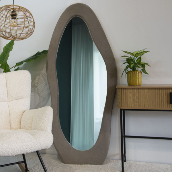 Mit dem Poltava Spiegel von Milton & Oldbrook setzen Sie einen trendigen und farbenfrohen Akzent in Ihrem Zuhause! Der taupefarbene Standspiegel ist dank seines weichen Samtbezugs und der trendigen Wellenform ein echter Blickfang. Der Spiegel von Milton & Oldbrook kann sowohl stehend als auch hängend in Ihrer Einrichtung verwendet werden und misst 75 cm x 170 cm. Der gewellte Spiegel hat eine Dicke von 3,5 cm. Der Poltava-Spiegel ist ein Multifunktionsspiegel. So ist der Spiegel sowohl funktional als auch dekorativ und kann in verschiedenen Räumen wie Flur, Wohnzimmer, Schlafzimmer oder Ankleidezimmer verwendet werden.