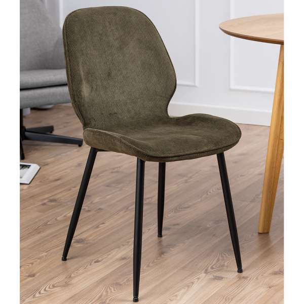 - Olivgrüne Cordstoff Esszimmerstuhl