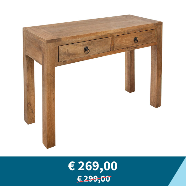 Der Wandtisch Ayden der Marke Eazy Living ist ein echter Stimmungsmacher für Ihr Interieur. Der Wandtisch ist ein Stehtisch, der zusätzlichen Stauraum bietet. Sie können den Eazy Living Tisch in Ihrem Flur, Wohnzimmer, Esszimmer, Schlafzimmer oder Büro verwenden. Der Wandtisch Ayden ist aus Mangoholz gefertigt und hat einen natürlichen, warmen Touch. Der Konsolentisch hat 2 Schubladen und ist 80 cm hoch.