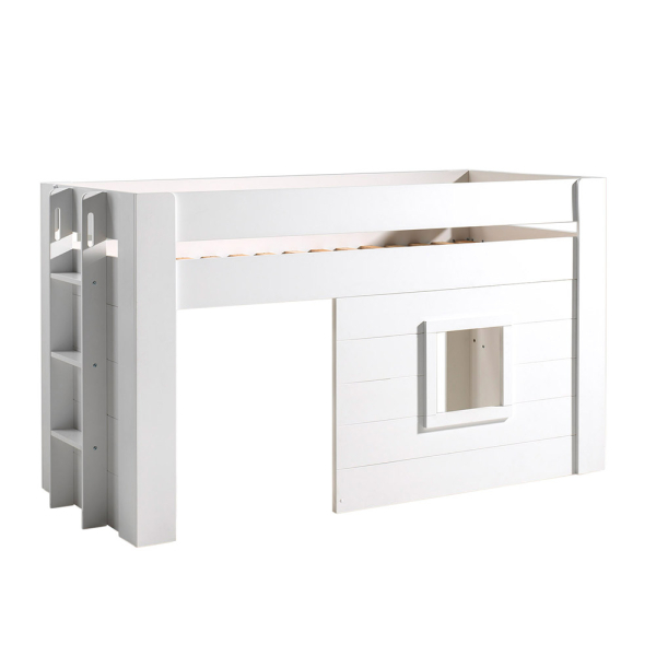 Das Josie Mid-High-Bett Van Dream Tree bietet ein schönes Spielzimmer und viel Schlafkomfort. Das Einzelbett für Kinder unter dem Bett hat einen Spielbereich mit einer Tür und einem Fenster, zusammen mit dem Beilage Vorhänge . Also sieht es aus wie ein echtes Haus! Entlang der kurzen Seite des Bettes haben Sie eine Treppe mit abgerundeten Ecken. Das Loft-Bett mit Matratzengröße 90 x 200 cm kommt mit einem Lattenboden und eignet sich für Kinder ab 4 Jahren.