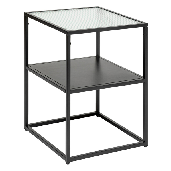 Mit dem Beistelltisch Sabrine von Eazy Living verleihen Sie Ihrer Einrichtung einen eleganten Look. Der schwarze Beistelltisch ist ein halbrunder Tisch mit 2 Ebenen. Der Sabrine hat eine Tischplatte aus gehärtetem Glas und ein Eisengestell. Die zweite Tischplatte ist aus Eisen gefertigt. Die Sabrine macht sich gut neben dem Sessel oder Sofa und kann zur Aufbewahrung von Zeitschriften, Fernbedienungen und etwas Dekoration verwendet werden. Sie können den Eazy Living Tisch nicht nur als Beistelltisch, sondern auch als Nachttisch in Ihrem Schlafzimmer verwenden. Der Tisch Sabrine hat eine Breite und Tiefe von 40 cm und eine Höhe von 55 cm.