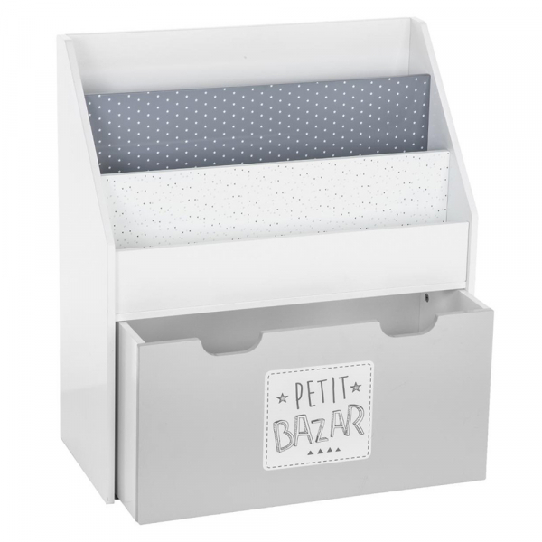 Mit dem Bazar Bücherregal von Eazy Living kann Ihr Kind alle seine Lieblingsbücher ins Rampenlicht stellen. Das kleine Bücherregal ist aus MDF gefertigt und bietet zusätzlichen Stauraum im Kinderzimmer. Auf der Oberseite des Schranks befinden sich 3 Fächer, in die Sie Lesebücher, Zeitschriften oder andere Kinderbücher legen können. Unter den 3 Ablagefächern befindet sich eine große Schublade, die als Spielzeugkiste genutzt werden kann. Mit dieser Kinderzimmeraufbewahrung sorgen Sie dafür, dass kein Spielzeug mehr herumliegt.
