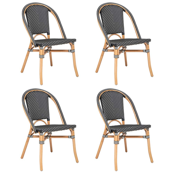 Der schwarze Dinan Esszimmerstuhl von Eazy Living ist ein stilvoller Bistrostuhl aus Rattan und Polyethylen. Der Dinan hat ein schönes zweifarbiges Geflecht mit grafischen Mustern. Der charaktervolle und bequeme Esszimmerstuhl von Eazy Living kann an alle Arten von Esstischen gestellt werden. Kombinieren Sie den Rattan-Esszimmerstuhl mit einer Rattanlampe und einem Juteteppich, und der Look ist komplett! Der Bistrostuhl von Eazy Living hat eine Breite von 48 cm, eine Tiefe von 56 cm und eine Höhe von 84 cm und wird als Set mit 4 Stühlen verkauft.