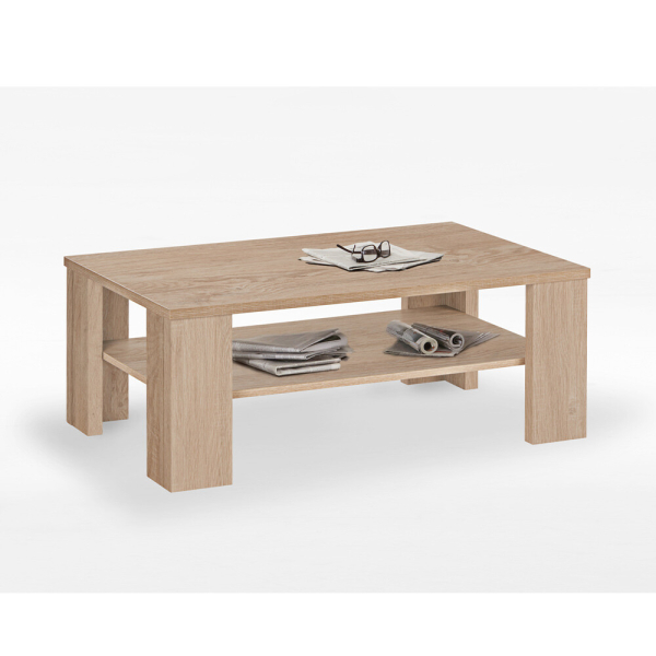 Der hölzerne Hector Couchtisch von IPari bietet eine warme Atmosphäre in Ihrem Wohnzimmer. Der Couchtisch ist ein rechteckiger Couchtisch mit 2 Ebenen und breiten Tischbeinen. Die Tischplatte kann ein Gewicht von 40 kg tragen und das Regal kann ein Gewicht von 15 kg tragen. Auf diese Weise können Sie schöne Dekoration oben und am Ende Ihrer Zeitschriften, Untersetzer und Fernbedienungen platzieren. Der hölzerne Couchtisch besteht aus Spanplatten und hat ein zeitgenössisches Look. Der Hector Couchtisch kann in unterschiedlichen Innenräumen platziert werden und kann leicht mit anderen Möbeln kombiniert werden.