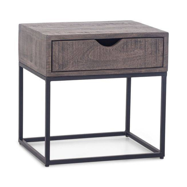 Der Nachttisch Stein von Lula ist aus grauem Akazienholz und schwarzem Eisengestell gefertigt und verfügt über eine praktische Schublade. So können Sie auf dem grauen Nachttisch unentbehrliche Dinge in Reichweite aufbewahren. Die Struktur des grauen Holzes und der Metallrahmen verleihen dem Schlafzimmer einen industriellen Touch. Tipp: Der Nachttisch Stein kann auch als Beistelltisch oder als kleiner Wandtisch im Wohnzimmer oder Wohnbereich verwendet werden.