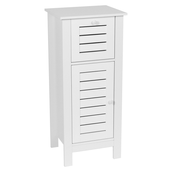 - Geräumige Schubladen: Der Schrank ist praktisch aufgeteilt mit 1 Schublade für kleinere Gegenstände und einer Tür mit Einlegeboden für größere Dinge.